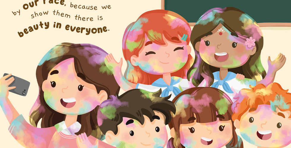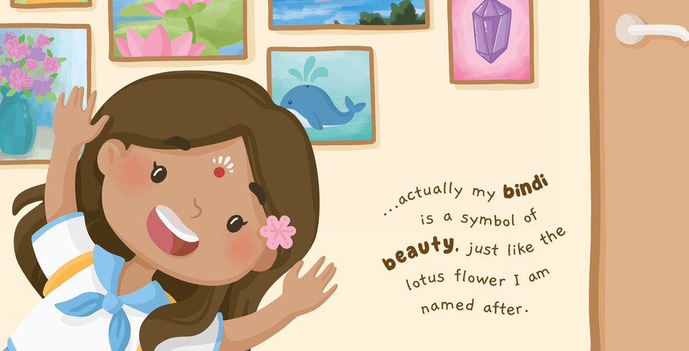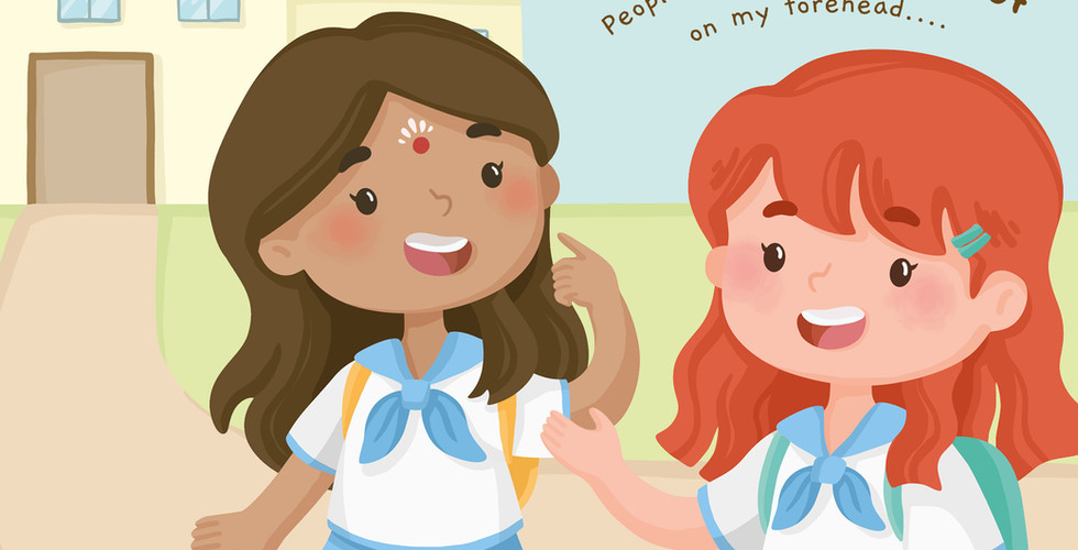 Kamala is a young Indian girl going about her day in school. I want this story to relate to many children's everyday routines. So, together with Kamala, children will explore her unique culture and learn the origins of these cultures. I want to show them that differences should be embraced because it creates something beautiful. Just like the different colours Kamala uses to celebrate the Festival of Colours, they come together to make one joyful celebration for all." - Louise Emilie